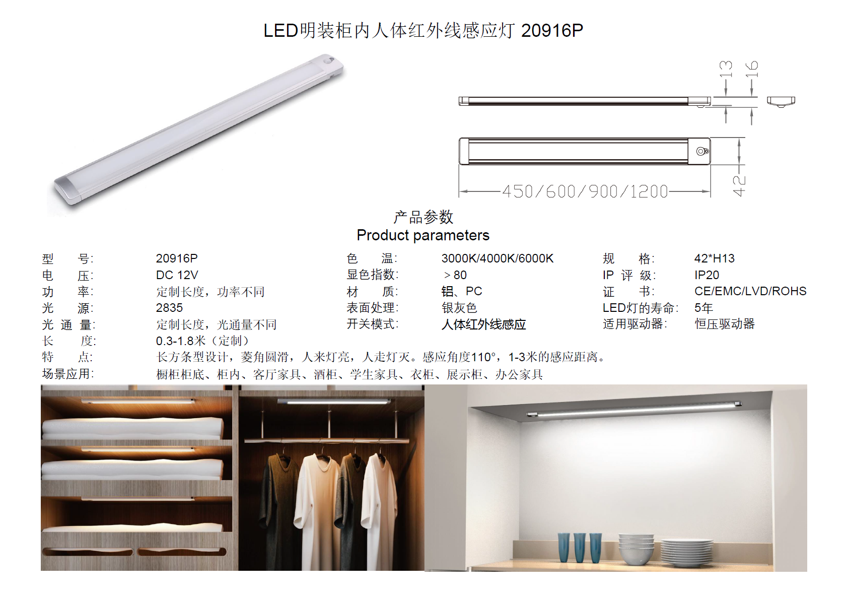 LED明装柜内人体红外线感应灯 20919