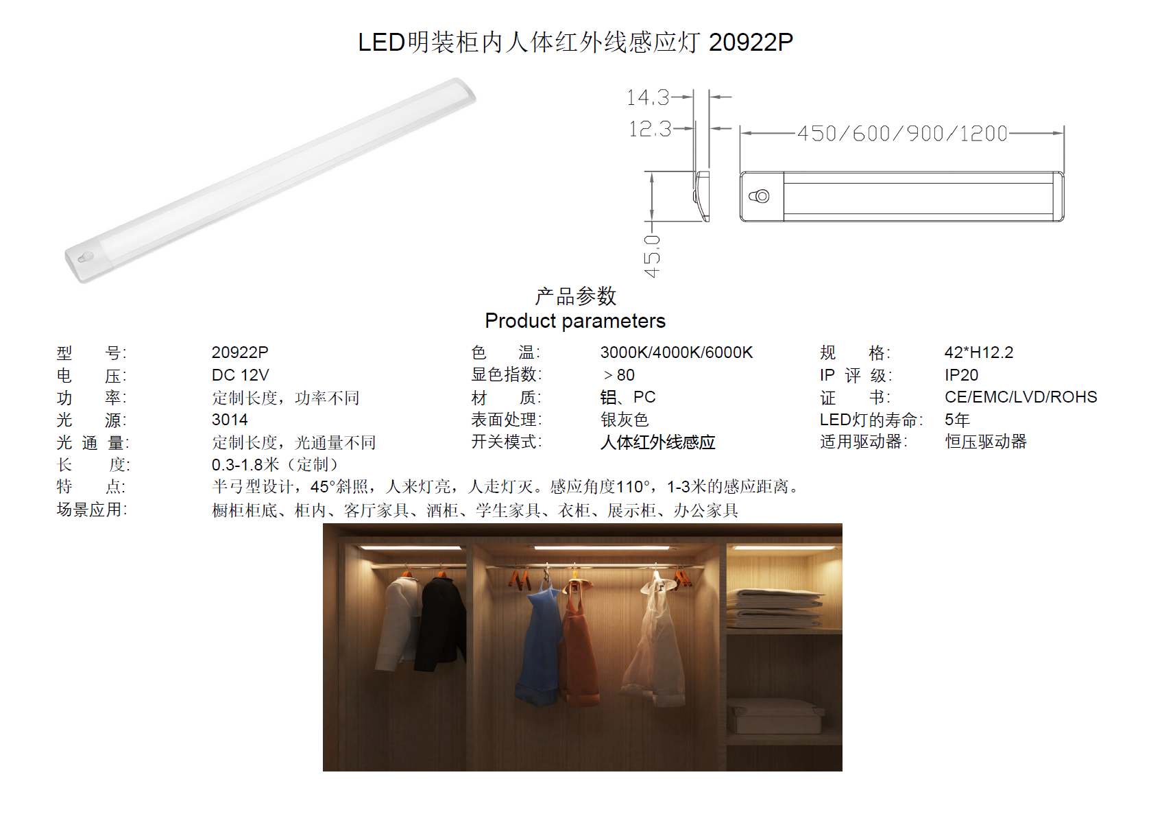 LED明装柜内人体红外线感应灯 20916P